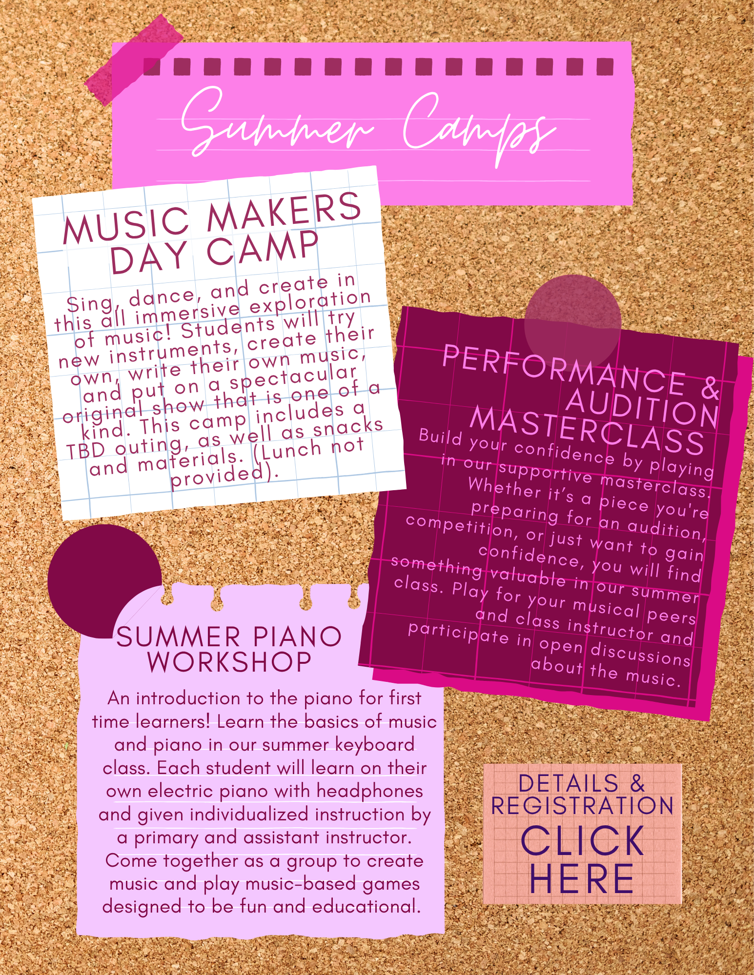 We offer Piano, Guitar, Ukulele, Voice, Flute, Violin, Cello, Composition, and Theory lessons, both in-person & online! Check out our Faculty page to meet our teachers.